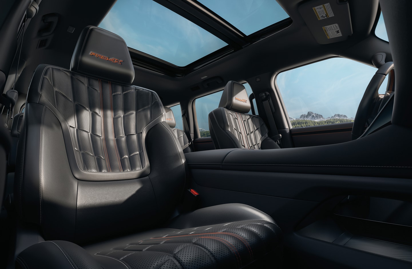 - PRO-4X®: Tackle off-road adventures with all-terrain tires, locking rear differential, skid plates, air springs, and PRO-4X leather seat trim.